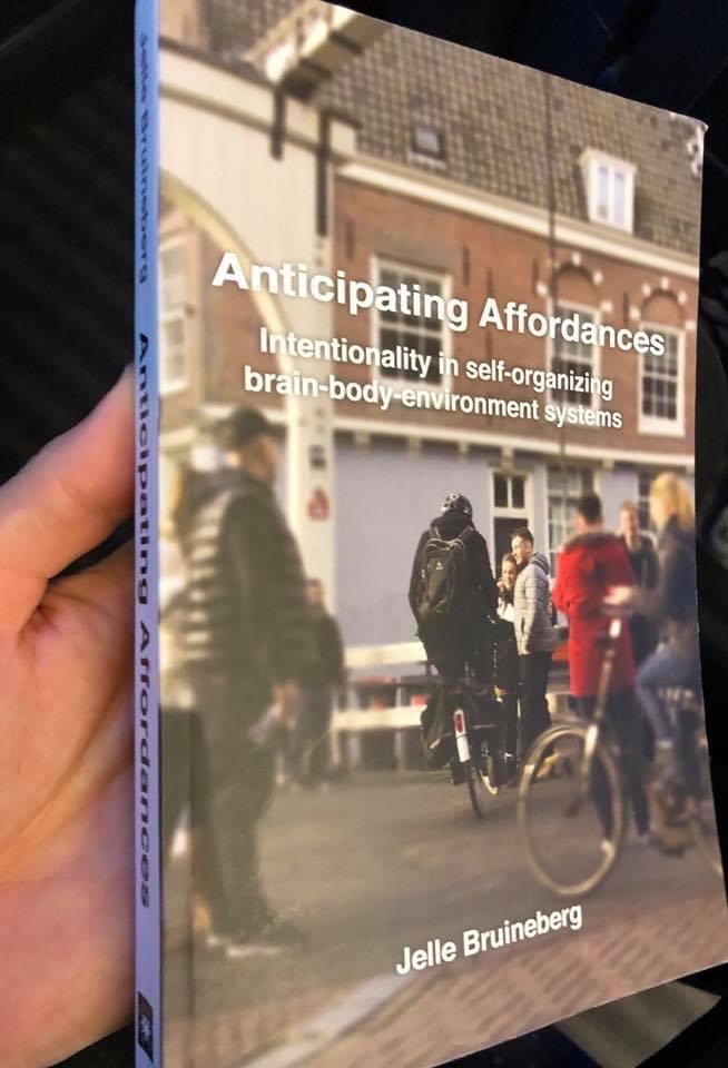 March 12, 2018: A Great Leap Forward for the field and our NWO VIDI-project ‘The Landscape of Affordances: Situating the Embodied Mind’! After four years of hard work Jelle Bruineberg, the PhD-student on that project, succesfully defended his impressive PhD-thesis ‘Anticipating Affordances: Intentionality in self-organizing brain-body-environment systems’. Well done Jelle!