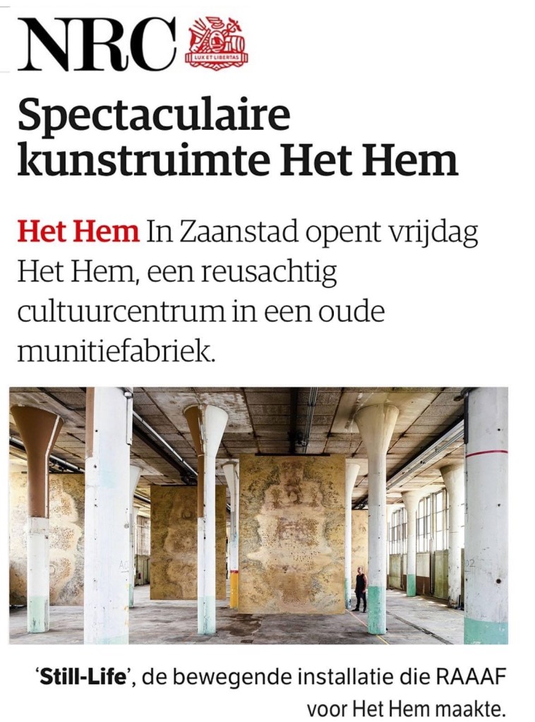 Dutch national newspapers NRC and Volkskrant published on our new art installation Still Life, which was tailor made for the large new art space Het Hem.